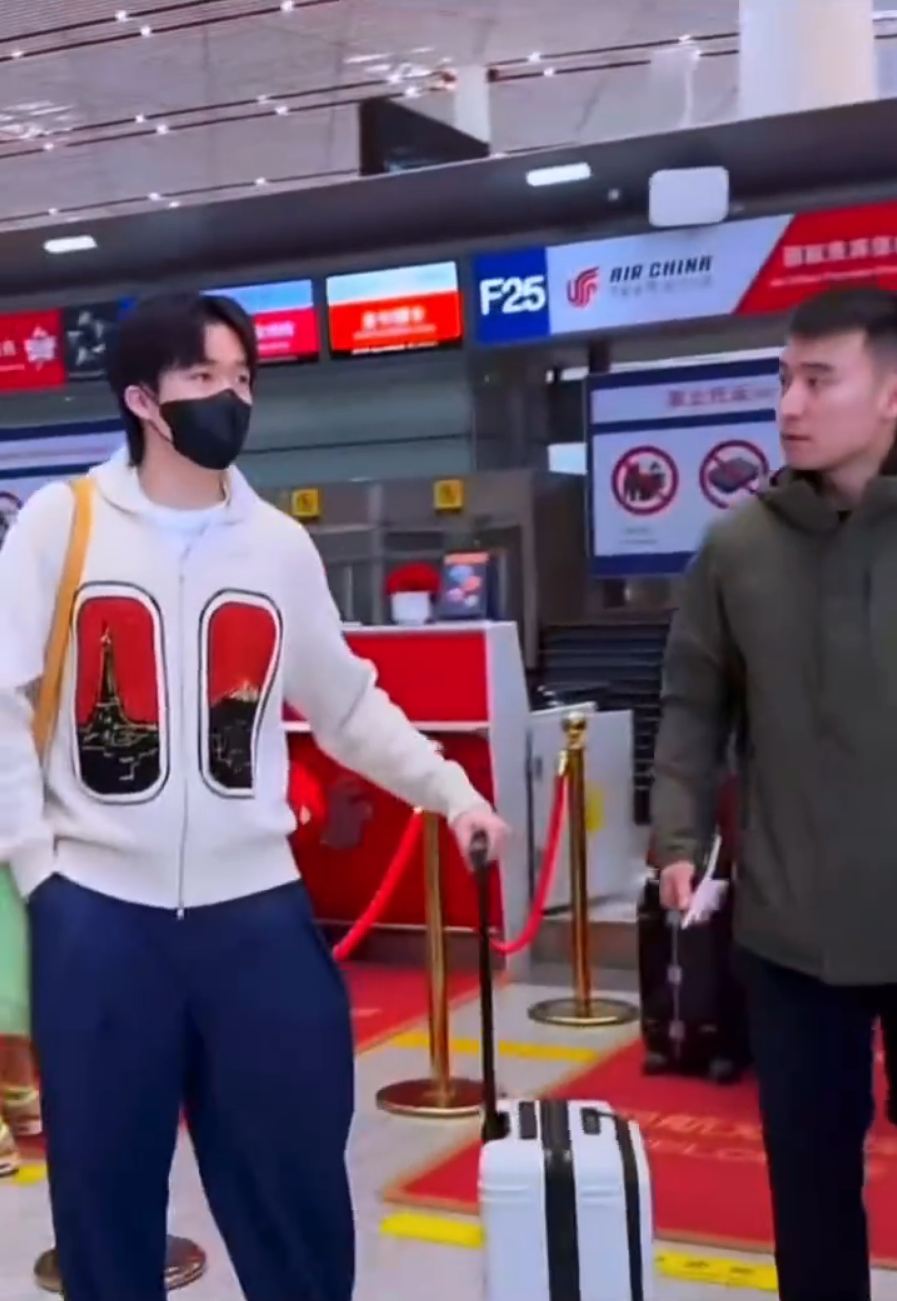 10月8日,王楚钦跟随国乒全队一起出证印度亚锦赛,只见他穿着一件白色时尚的套头衫,戴着黑色口罩现身北京机场。国乒需要先前往香港机场转机。
